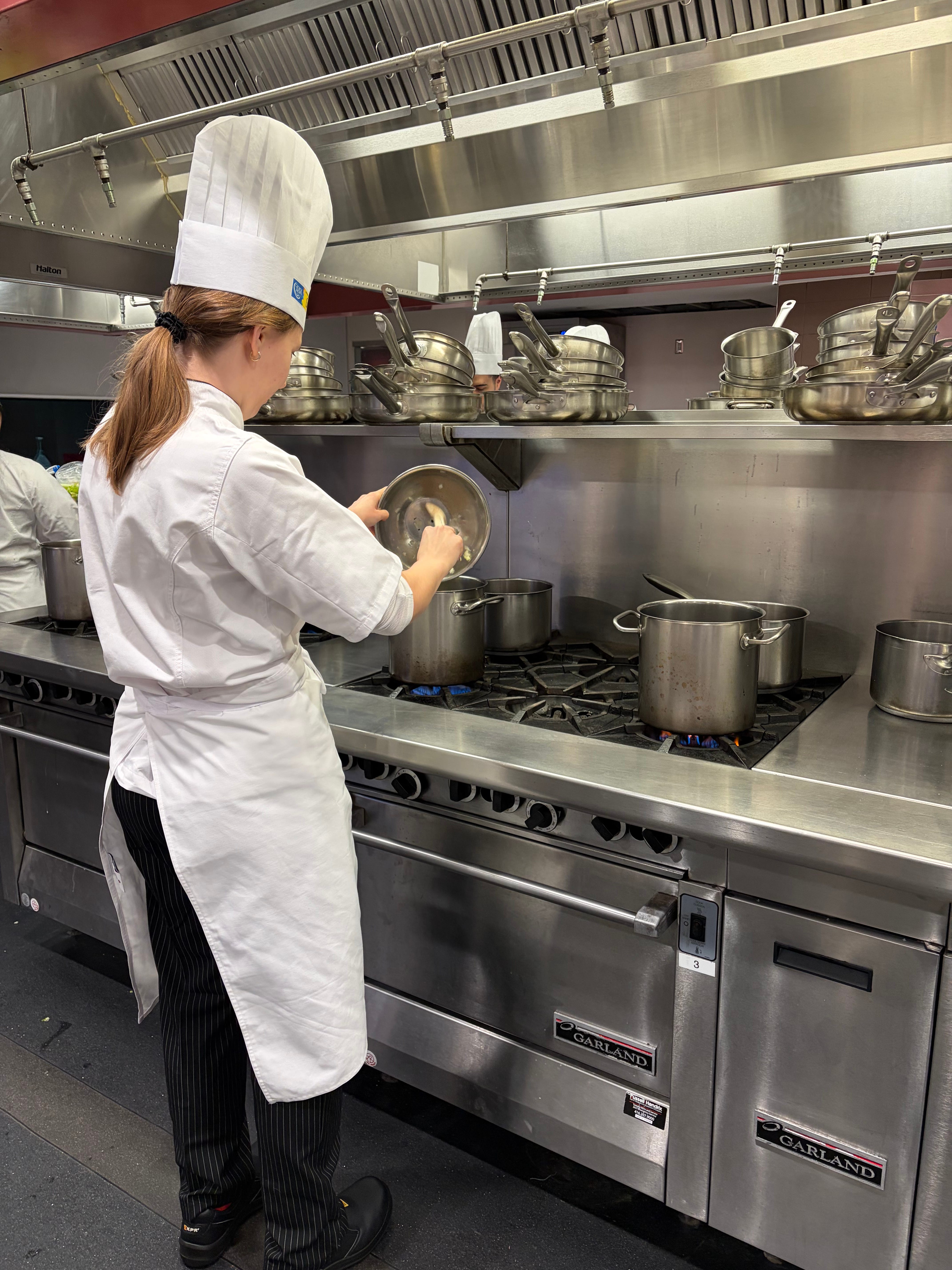 One of the perks of the class is you get fed by the chef during the class and you also take home the meal you make (hell yeah, leftovers). This week’s meal was broth so it was a pretty light dinner, and I managed to burn my tongue on all of them. We also learned basic kitchen safety - how to carry your knives, announce when you’re walking around with something hot by saying “hot…hot…hot…hot”, she didn’t teach us BEHIND or CORNER like they say in The Bear, but I’m hoping this comes up soon.